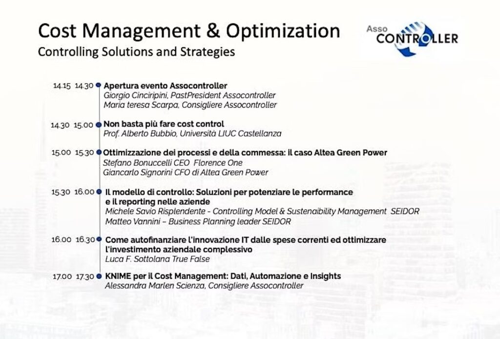 - Consulenti e Professionisti di Ottimizzazione dei Processi: Per chi lavora come consulente o specialista nella revisione e ottimizzazione dei processi aziendali, l’evento offre conoscenze pratiche su strumenti e strategie di controllo dei costi che possono essere applicate a diversi settori e funzioni aziendali.